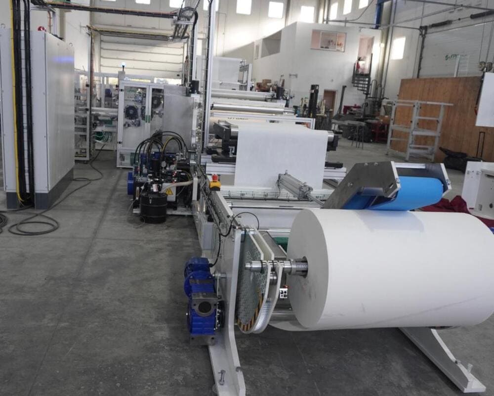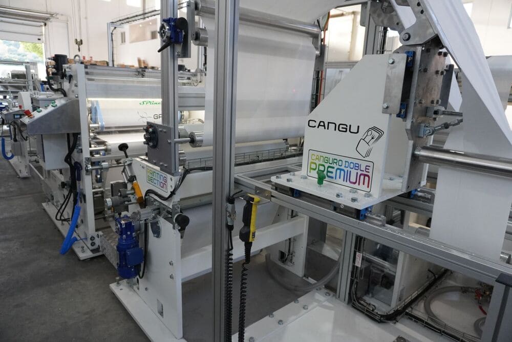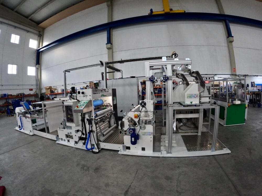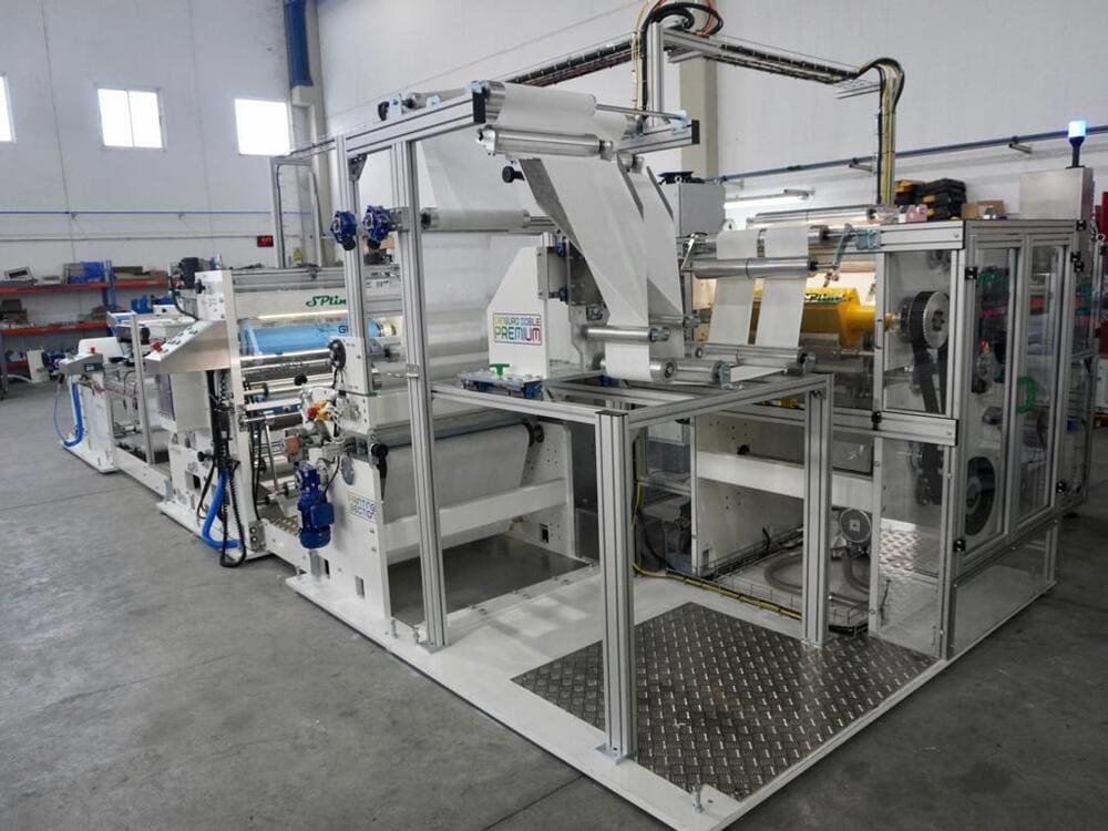 Machine for the production, transfer and packaging of kangaroo napkins. Also possibility of mini kangaroo and 1/8 book type. The folding machine includes point to point laminator and printing unit. Can also work with AIRLAID.
