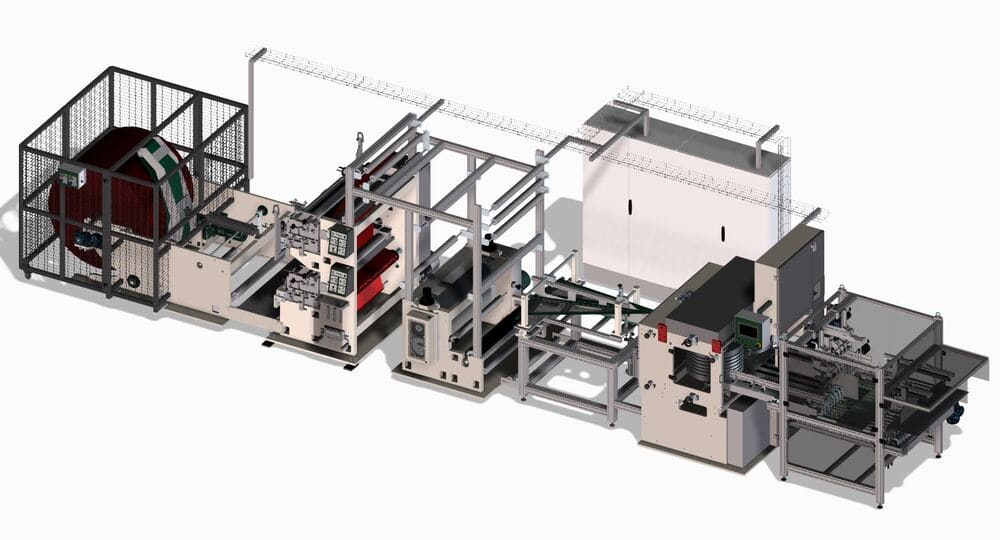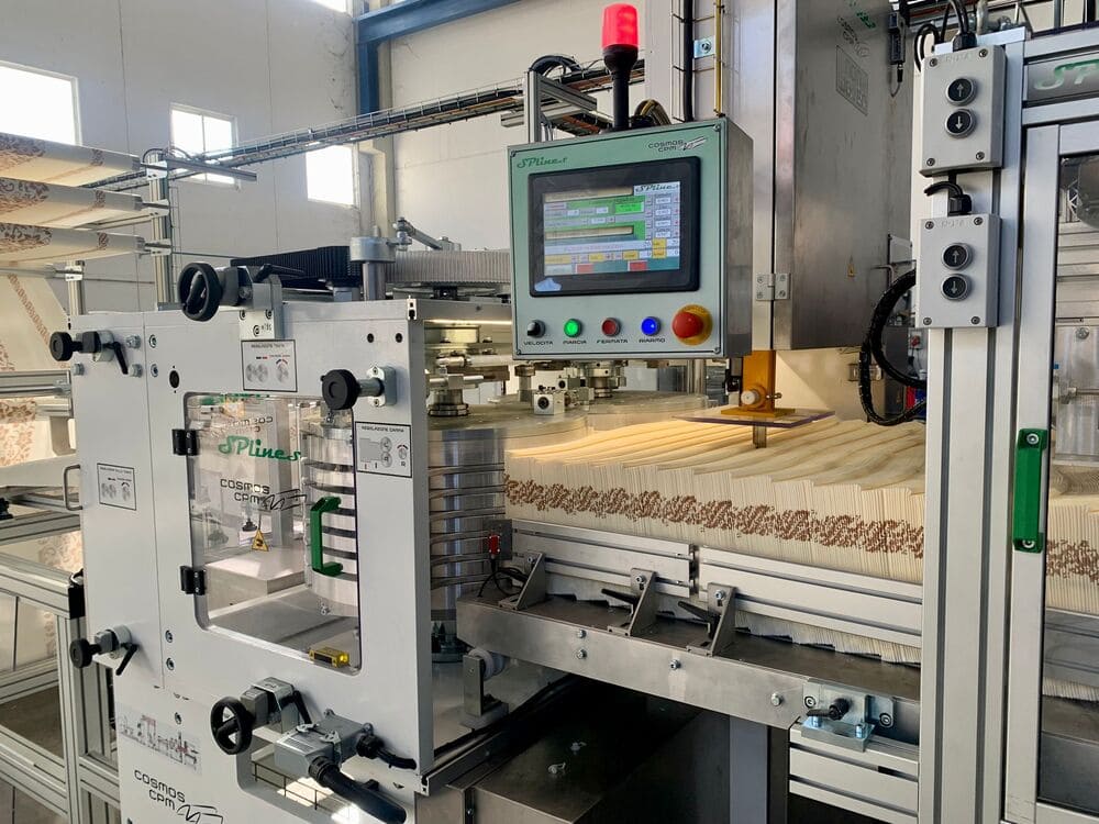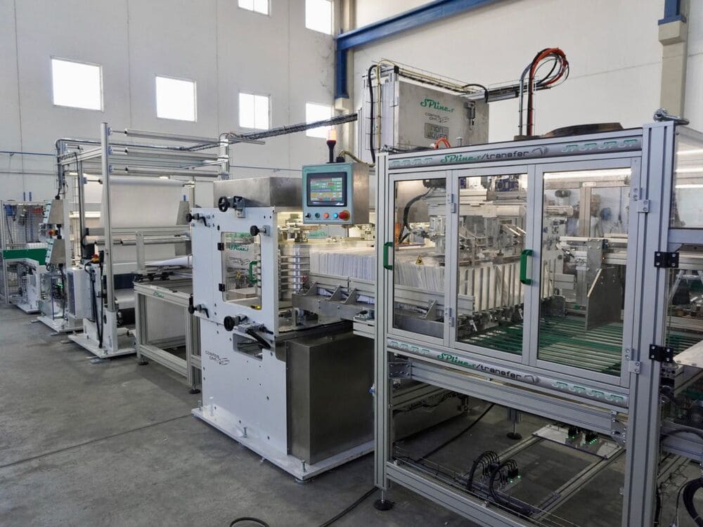 LA MANTELERA SPLINES MODELO COSMOS es una máquina para la producción de manteles plegados en cruz de papel y tejido sin tejer.